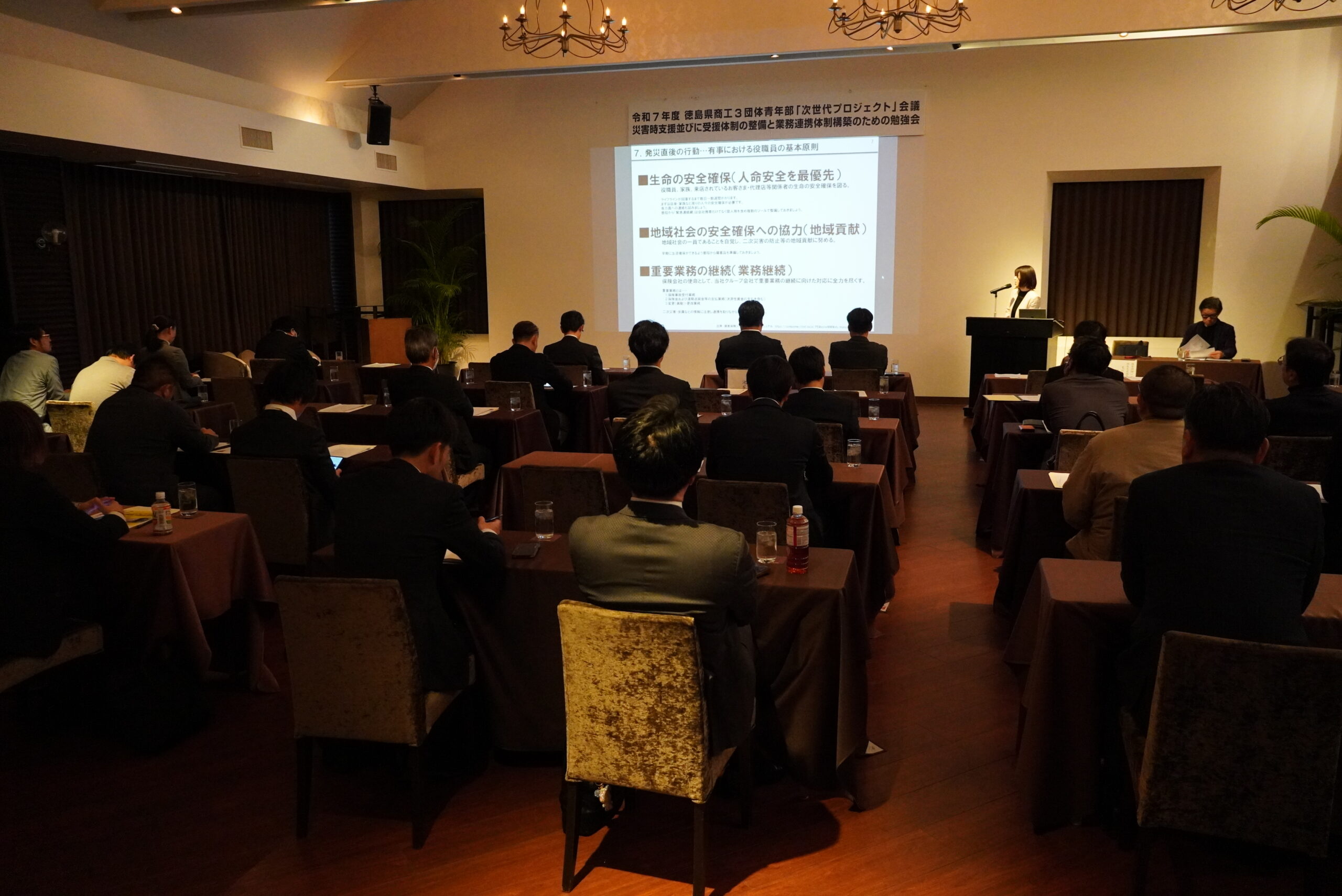 徳島県商工3団体青年部「次世代プロジェクト」会議では、大規模災害に備えて青年部の各企業による、災害支援の実施可能状況等情報を集約したWEBサイト「とくしま災害支援パートナーズ」を平成23年度から立ち上げています。